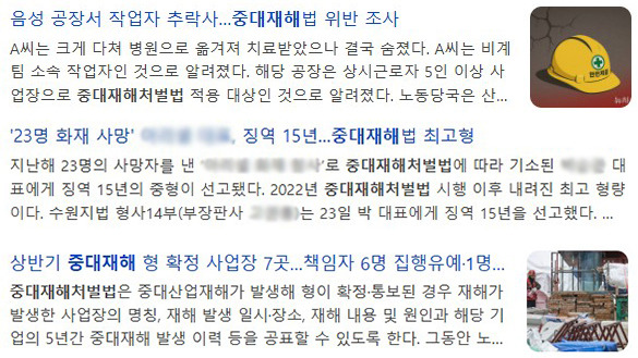 위 처럼 요즘 중대재해와 관련된 기사들이 끊임없이 올라오고 있어요!