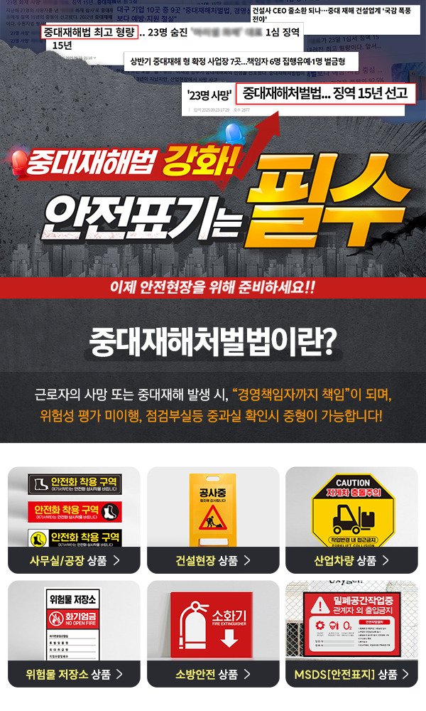| 현장 안전의 기본 중대재해 관련 안내판 및 스티커 4종 (0) | 2025.10.23 |